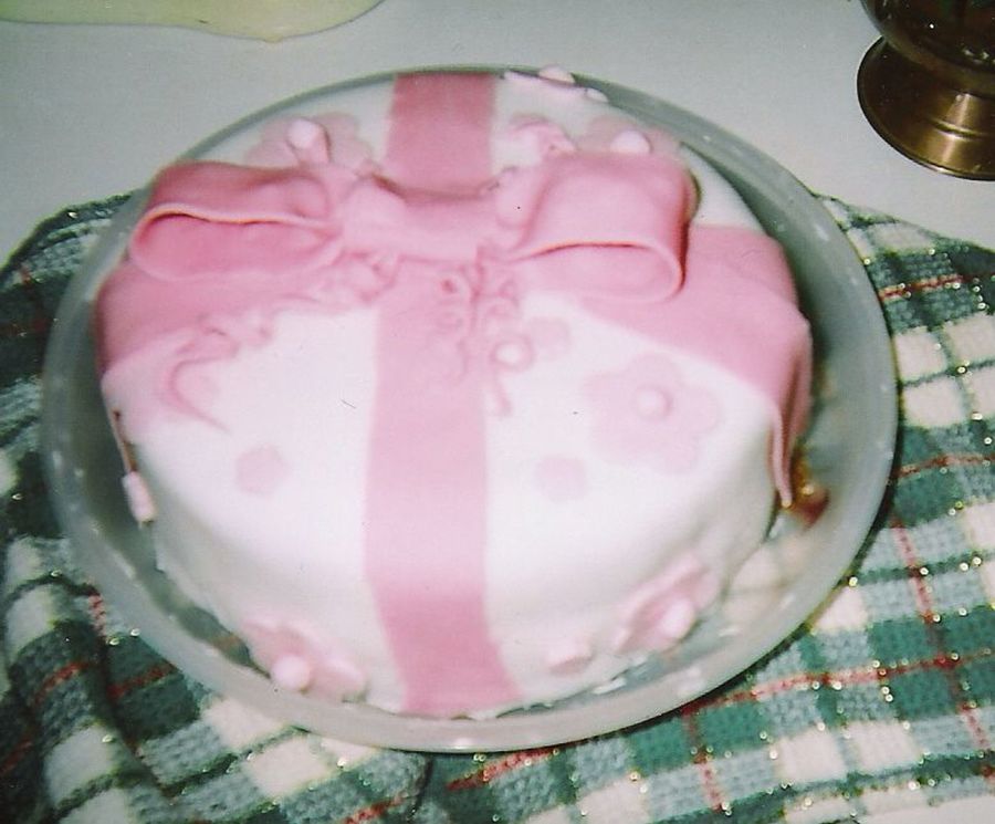 This was a project from a wilton class. I'm not proudest of this one, but I want more pictures on my page, lol it's a fondant covered cake in pink and white.