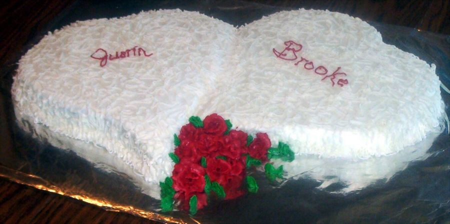 Well thought out cake design. Imagine how sweet the red velvet cake will look once the cake is cut! I love the deep red of the roses and the interlocking hearts! Well done!!! :D