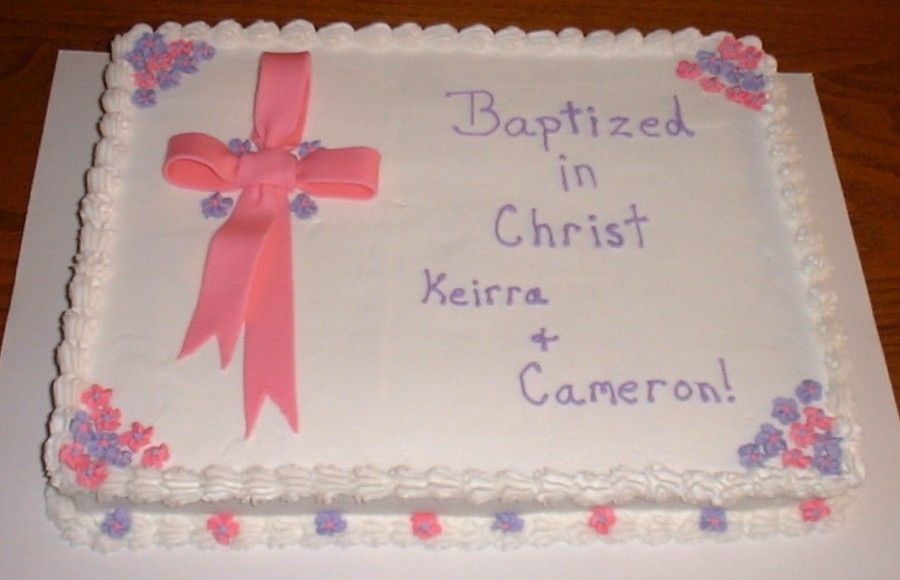 I didn't know what other gallery to put this one in. It was for the grandaughter and neice of a woman I work with. Fondant bow cross, buttercream icing and white cake. She loved it!