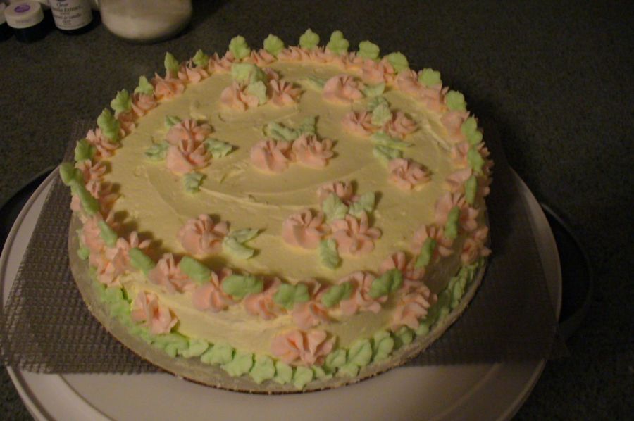 This is the first cake I made for my office. It is a marble cake with buttercream flowers.