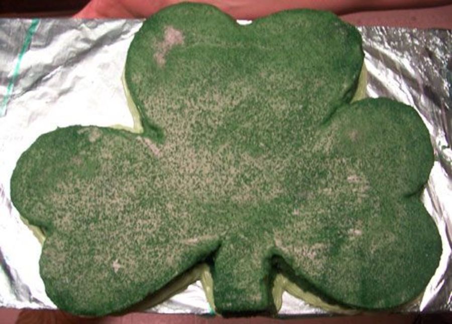 This was a cake I made for my brother to take to his work for his St. Paddy's Day party. It is a chocolate cake with candy melts and edible glitter!