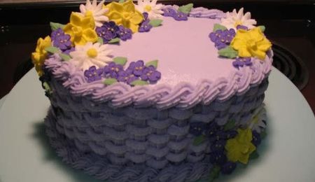 This is my first cake from the Wilton Course I class. I didn't want to do the rainbow so I did this instead. It was cuter in person