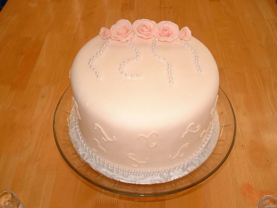 Three layer vanilla gluten-free wedding cake made specifically for the bride to eat, sheet cakes were bought for the rest of the guests.