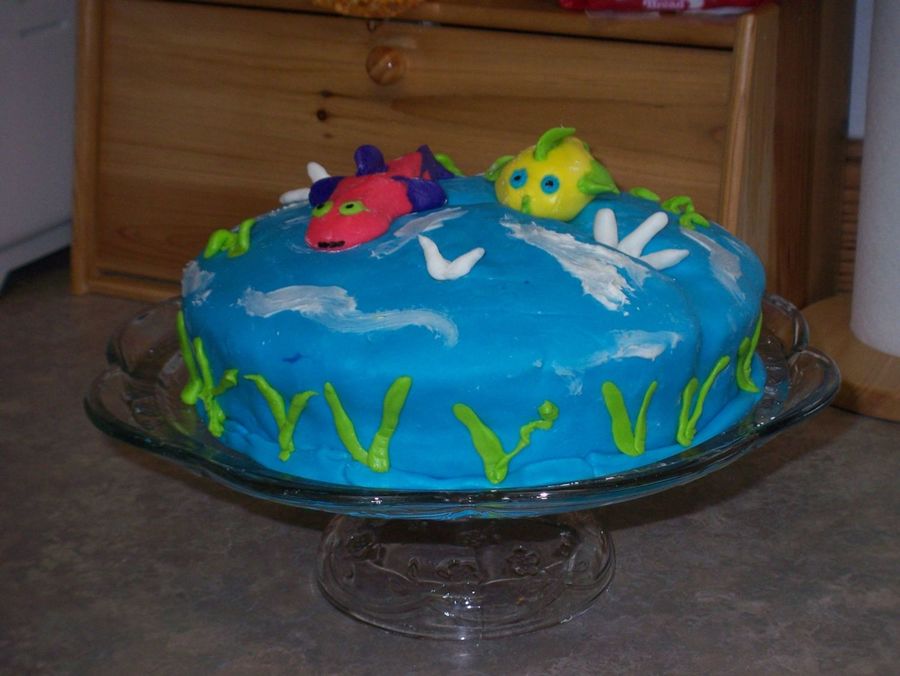 This is my very first time to EVER use MMF... It didn't come out quite as I envisioned it. lol I think my house was too hot b/c my MMF kept melting. My cake had an earthquake run through it haha. I got the idea for this cake from a cake that KelleyM did. :)