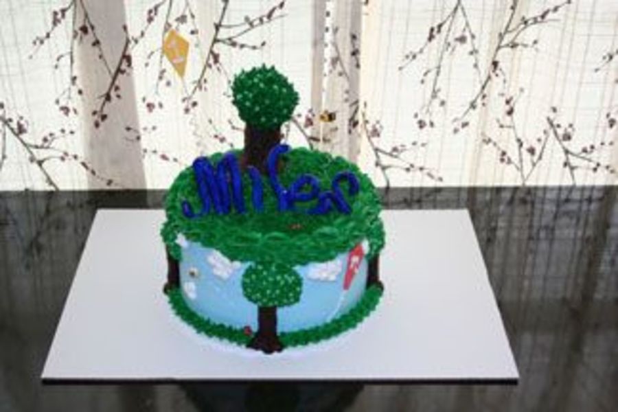 Made for my nephew - all decorations are gum paste/fondant except for the tree, which is modeling chocolate. Cake is three layers, white with strawberries and vanilla bc. The theme of his party was "kite flying" so I tried to incorporate that as best I could!