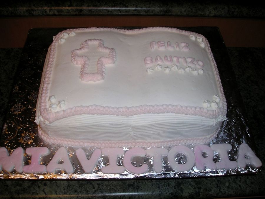 Book pan cake for a girl baptism.