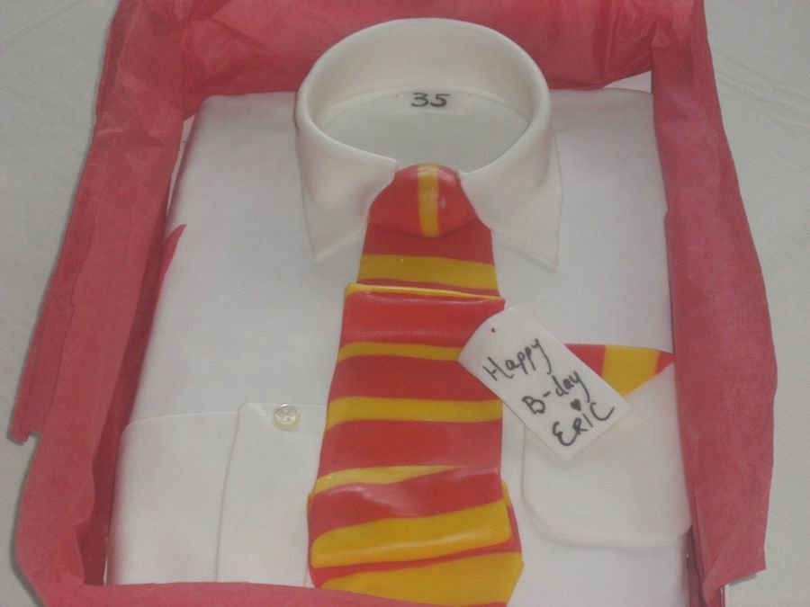 Chocolate Cake, with Kahlua frosting, with Satin Ice fondant on the top. I put it in a real shirt box with real tissue paper and put the lid on it to suprise my husband. Thanks to the inspiration from the pictures here on CC.