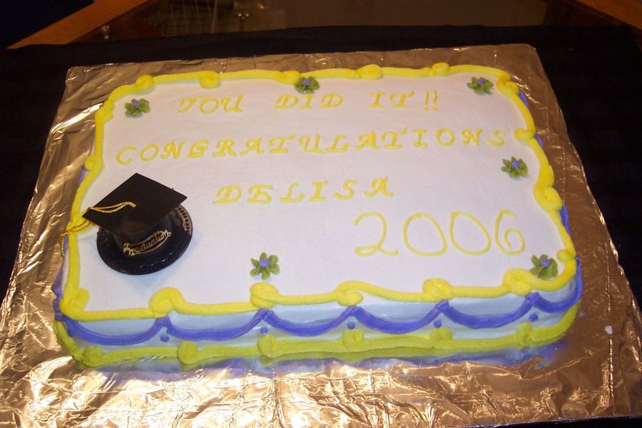 This is a vanilla cake with bc frosting. I baked it for my graduation from HHC as well.