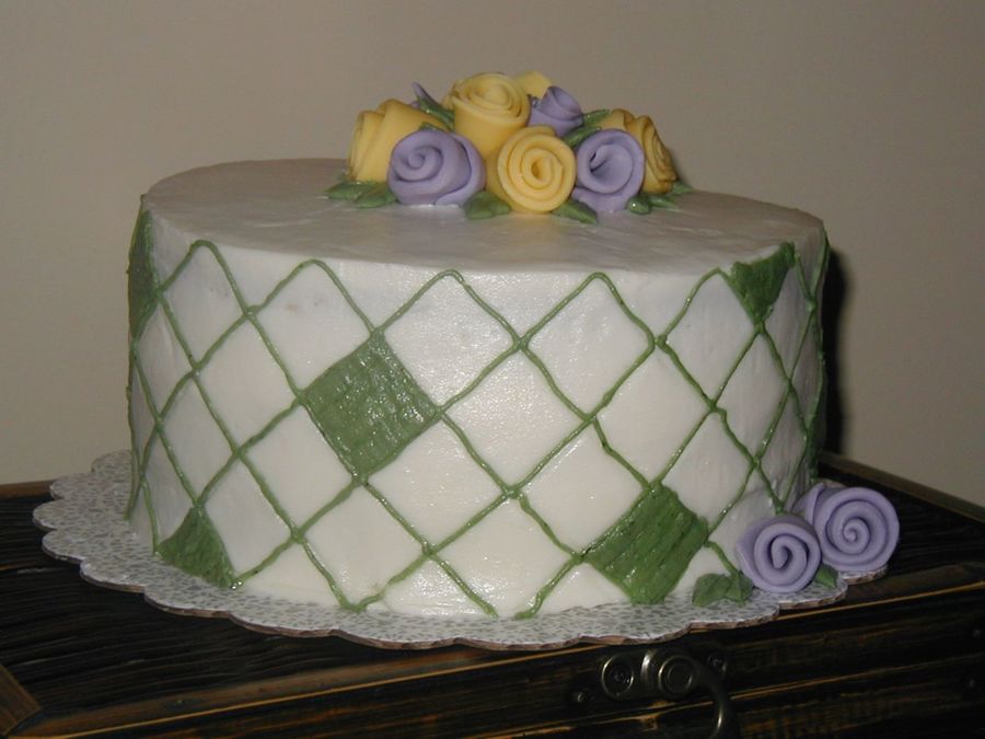 This is a chocolate cake and it was REALLY crummy. With just the impression mat it looked pretty bad so I covered it with green. I think it turned out okay, considering what it started like
