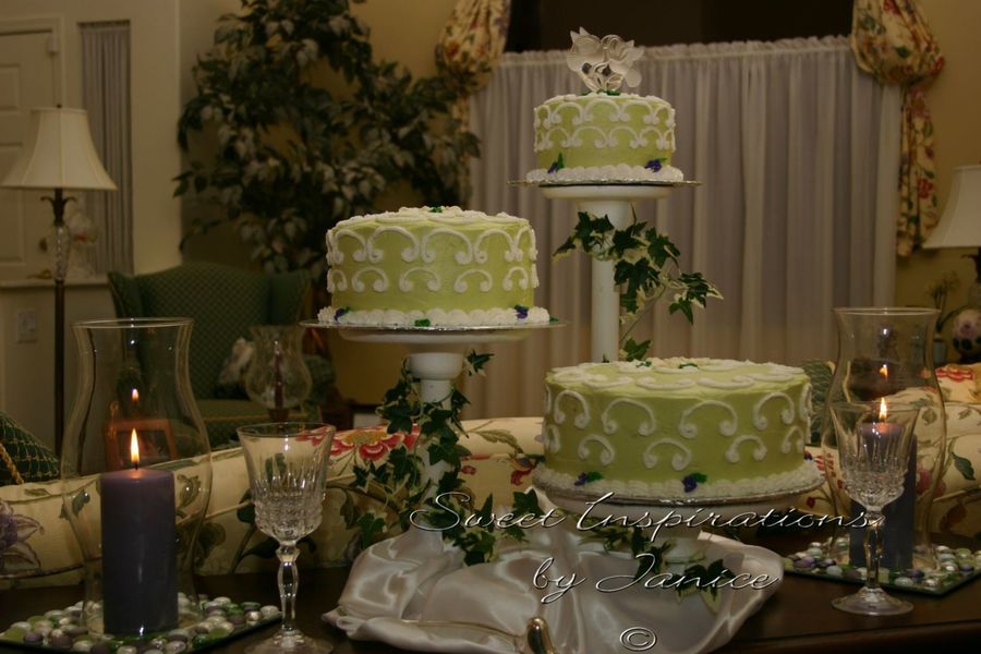 Thanks for the nice compliments. And yes, veejaytx I did do a "dress rehearsal" as I thought I would have to set up the cake table at the wedding. Fortunately the wedding coordinator at the hotel set up the cake table, but I was still 10 minutes late for the wedding because of working on the cakes with about an hour and a half sleep. Thought I was superwoman and found out I wasn't. lol