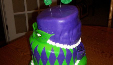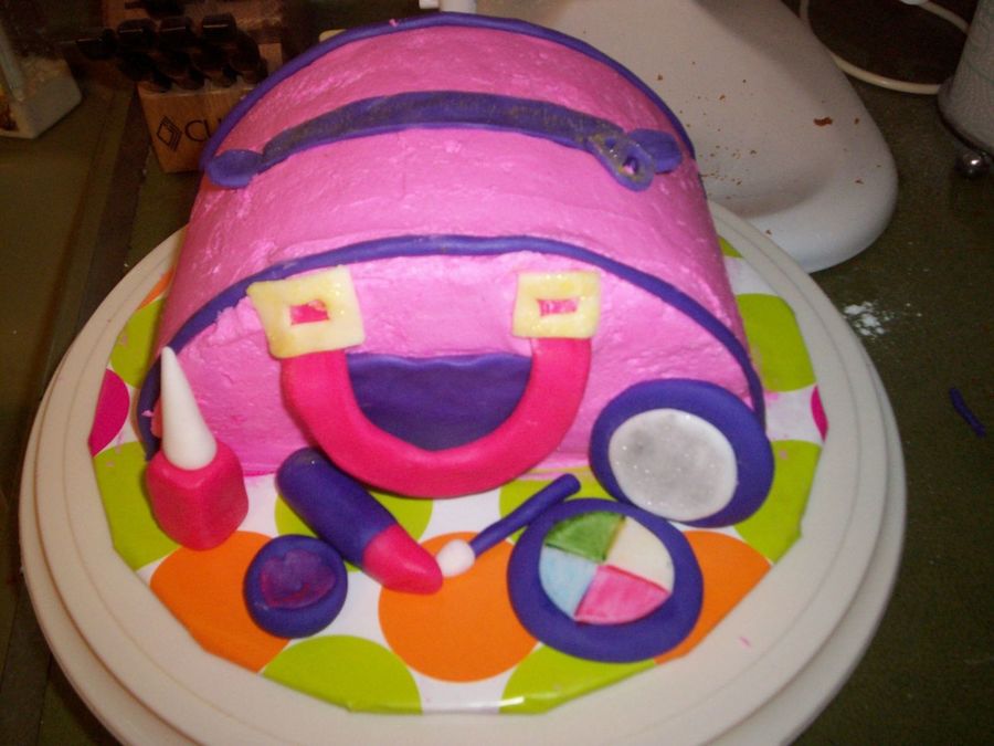 This is my first attempt at a purse cake my daughter decided that she would help when I went out of the room so I think it could've turned out better but overall I am happy with it. The cake is fudge marble with buttercream icing, and chocolate modling clay accents.