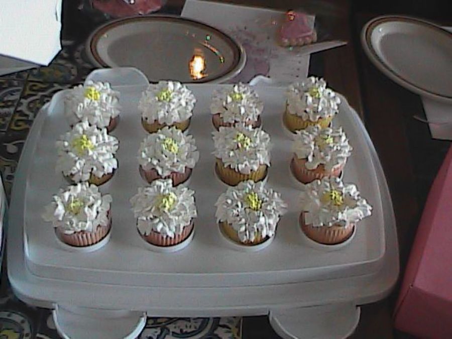 Inspired by cupcake. I tried to make them look like hers, but I think I still need a little more practice. White cake with bettercream icing