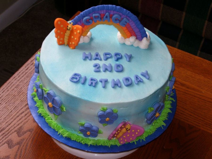 denise, your cake is beautiful. It looks perfect. I love the airbrushed look and the rainbow with the butterflies and name is great. I'm sure Grace loved it!