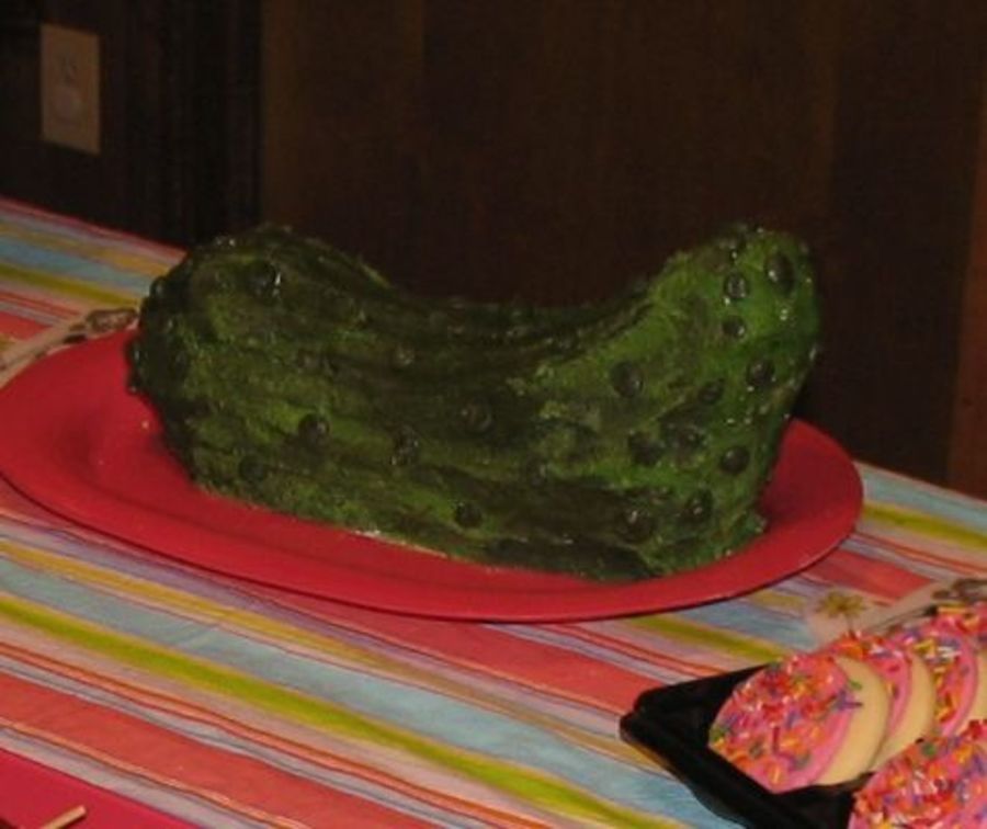 My daughter wanted something that match the pickles and ice cream baby shower supplies. We served the cake with little cartons of ice cream. Even the inside was dyed green yumm