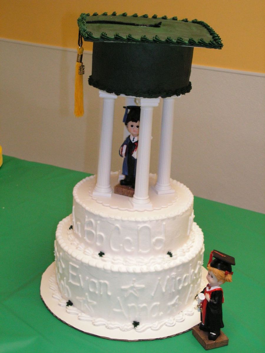 This cake was for my son's graduation. It is BC except for the top of the had (fondant). The bottom layer has all the kids first name around it. the 2nd layer I wrote Aa, Bb, Cc etc. and wrote 2 math problems. (My son gave me the math problems to put on the cake.) Everyone loved the cake and a lot of the kids posed next to it with their name showing.