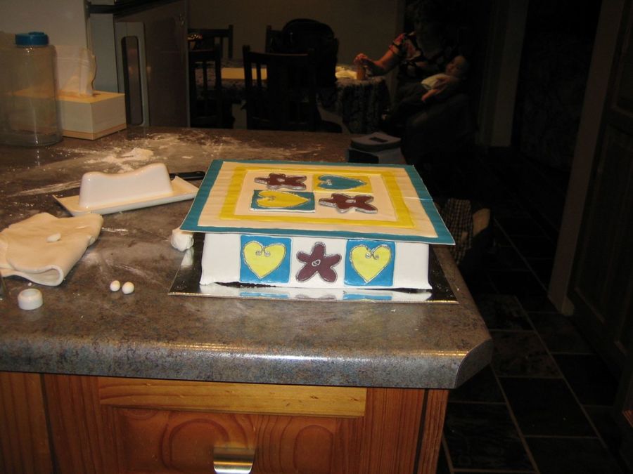 My first cake ever! The collar broke and the piping round the bottom wasn't finished.