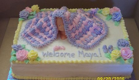 Two 9x13 cakes, both chocolate. One filled with Raspberry, the other Chocolate Bavarian. The 8 inch heart is chocolate cake with strawberry filling. Chocolate BC basket weave . Weighed a ton! Was done for a bridal shower for a gal at my husbands work.