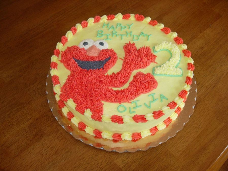 I made this cake for my friend's daughter. Traced Elmo from a coloring book, cut it out and then outlined it on the cake. One of these days I will try the buttercream transfer. Cake is Fr. Van. w/ bc icing. Yellow is a little brighter than I wanted (thought it looked like McDonald's with the red and yellow.) I was assured by psurrette that it did not. Both Mother and daughter liked it and that's what counts! Thanks for looking!