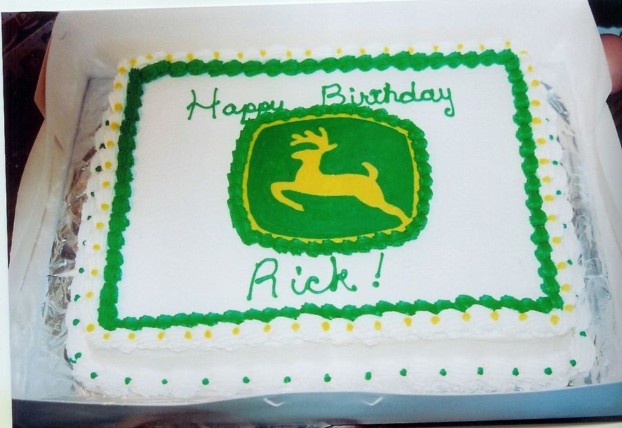 This is a chocolate cake iced in butter cream. The John Deere logo is a chocolate transfer.