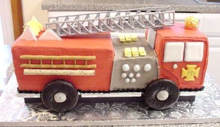 3D Fire Truck Cake Riding On Donut Wheels