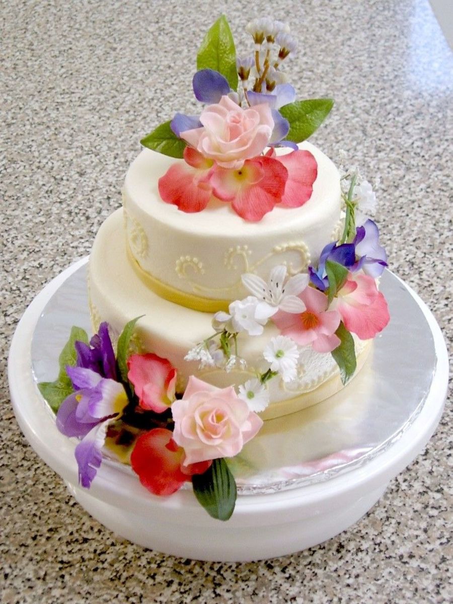 mamafrogcakes on 22 Aug 2005 , 4:19pm Beautiful cake and great job with the silk flowers! I had to look close! Could hardly tell, you did a good job of picking those out!
