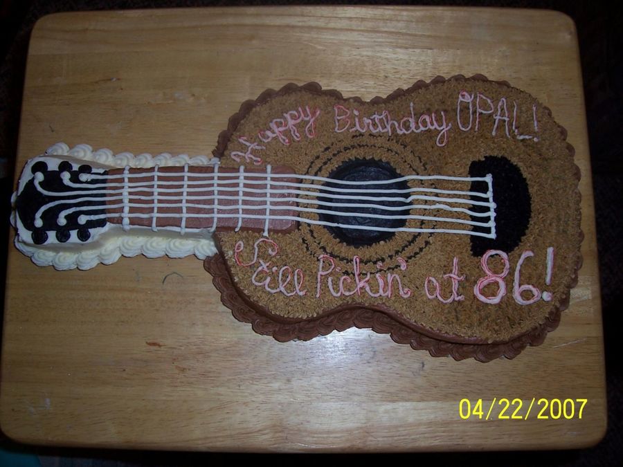 I made this cake for a family friend. She plays the guitar and is turning 86. I hope she likes it. I used the Wilton Guitar pan for this one.