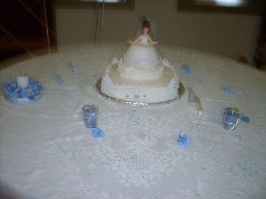 here is the cake as it st at the shower..we kept the top intact and she took it home