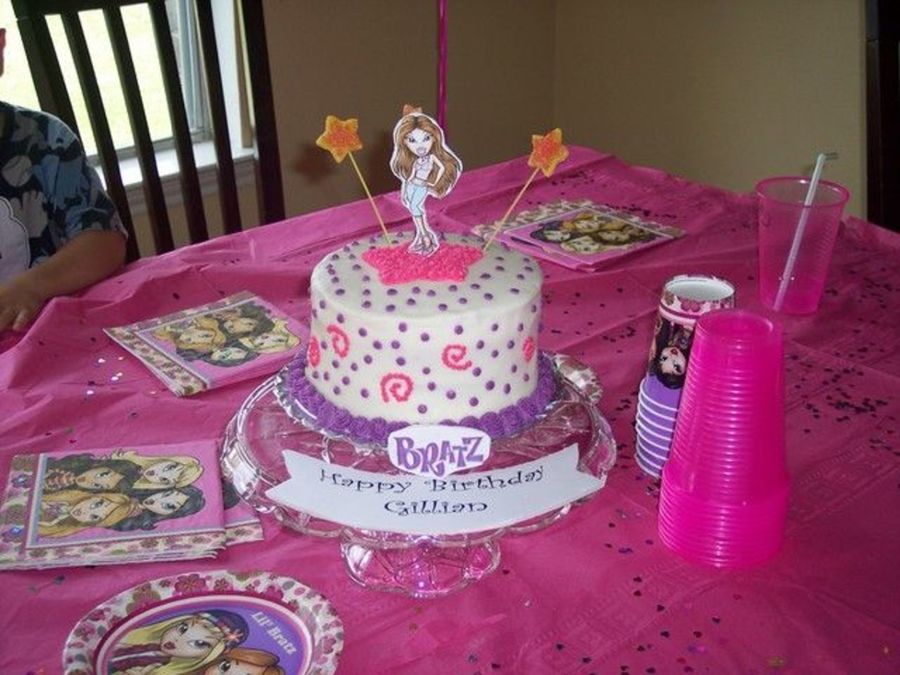 This is a Bratz cake I did for a little girls b-day. The mom wanted a personal cake (2 6in rounds) for the b-day girl and then cupcakes. I did the image plaque following boweens instructions. The cake is white. I used the hot pink food coloring for half the batter so the layers inside the cake are hot pink and white. Sorry no pic of that.