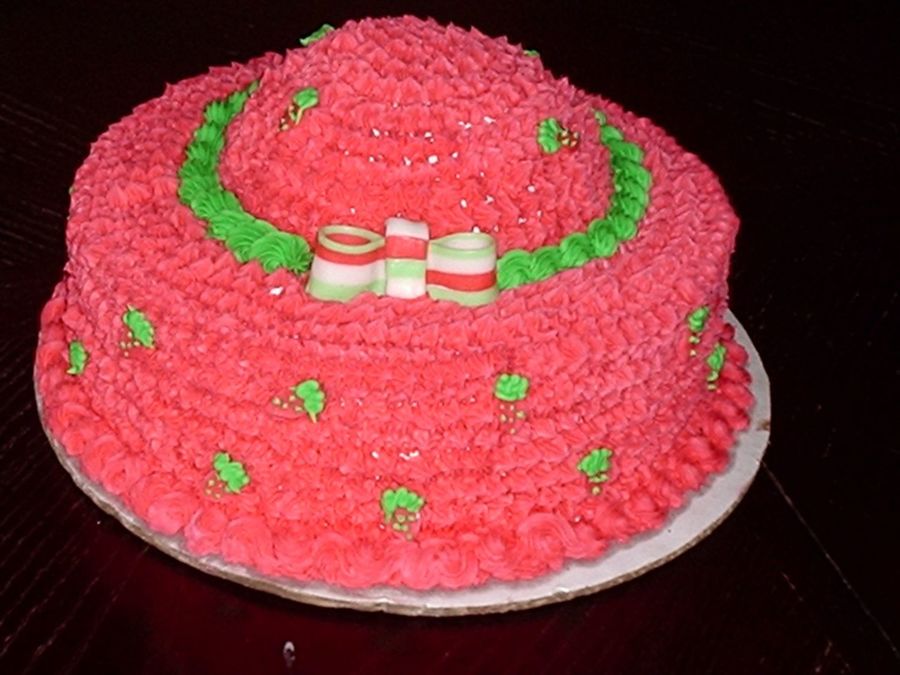 This is a duplicate of a cake saramama4 made except hers is flawless. (I have a ways to go before I can reach her talent) I had to come up with a cake that for my finals and I chose her cake. The chef and a couple of classmates were impressed and had lots of nice things to say. It's all B/C with Fondant bow and strawberries.