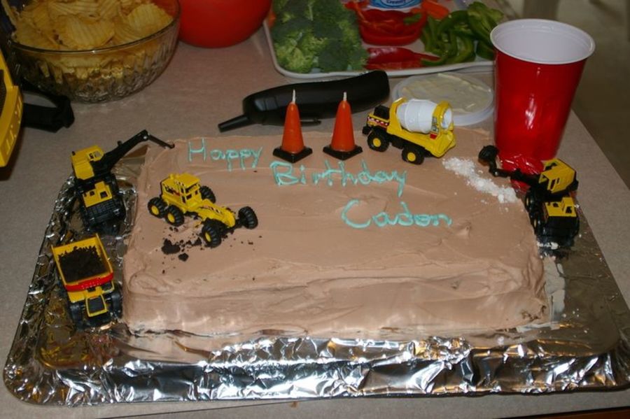 1/4 sheet cake decorated w/buttercream, tonka figures and 'cement' (crushed smarties)