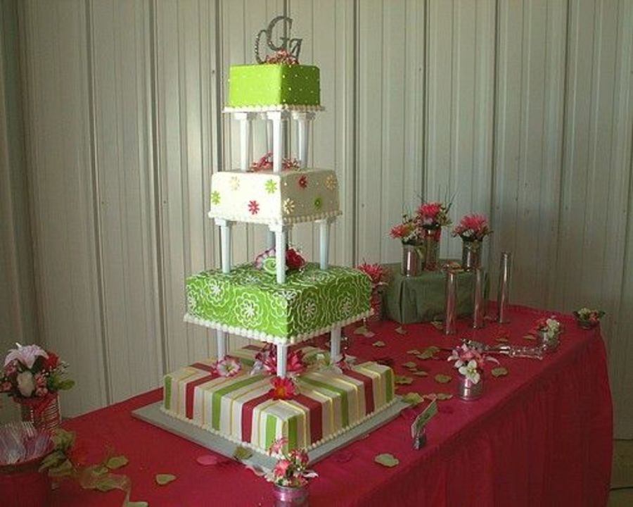 I think it's perfect! Having the pillars that high really shows off each individual design in detail. My favorite colors, too *wink*. My favorite cake thus far! Kudos! ;-D