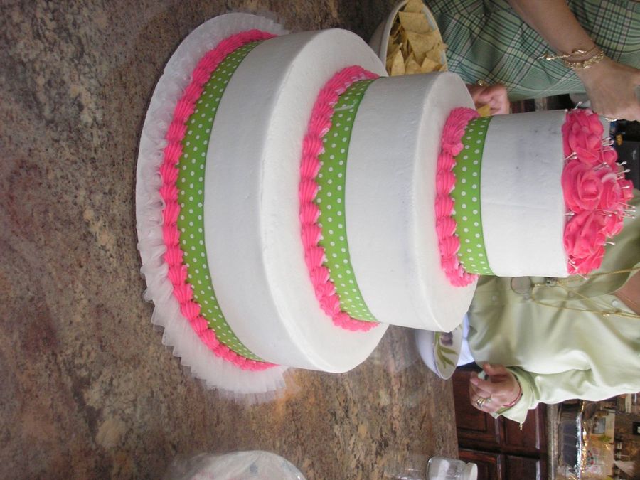 LisasCakes2626 on 4 May 2007 , 5:22am I like! Simple but pretty! How do you get the ribbon to stick together at the ends? Your white is really smooth! Great Job!!