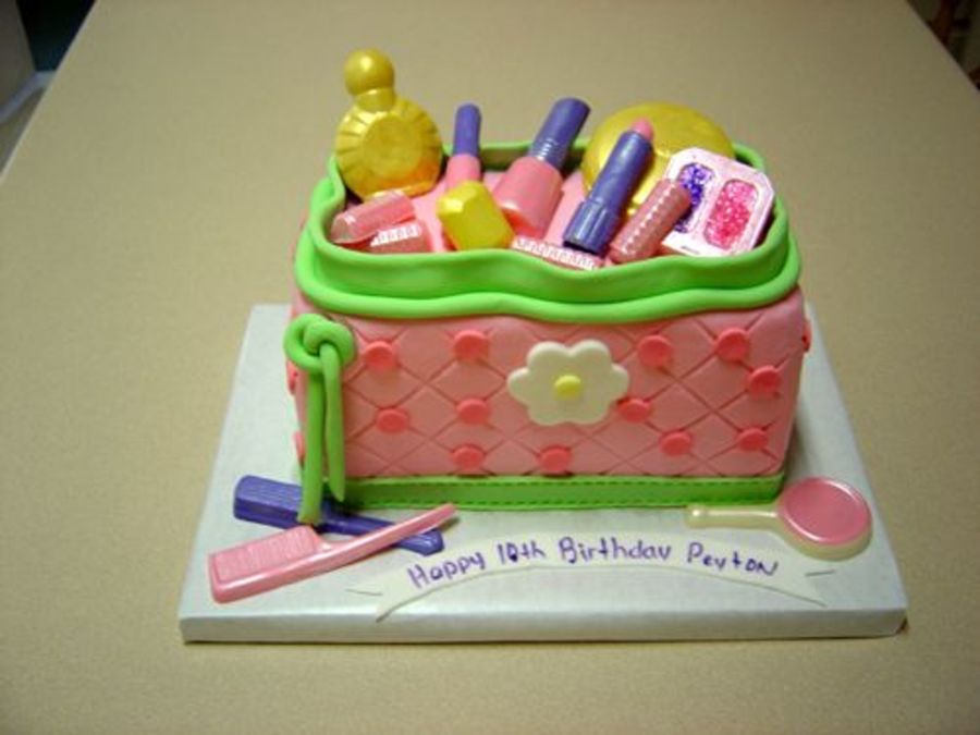 Another spectacular cake! Your makeup bag is absolutely gorgeous. I especially love the green opening area i.e. the top edge (I don't know what you'd call it but it looks great!) Your makeup candies are awesome.