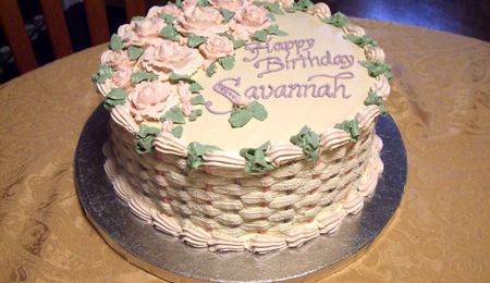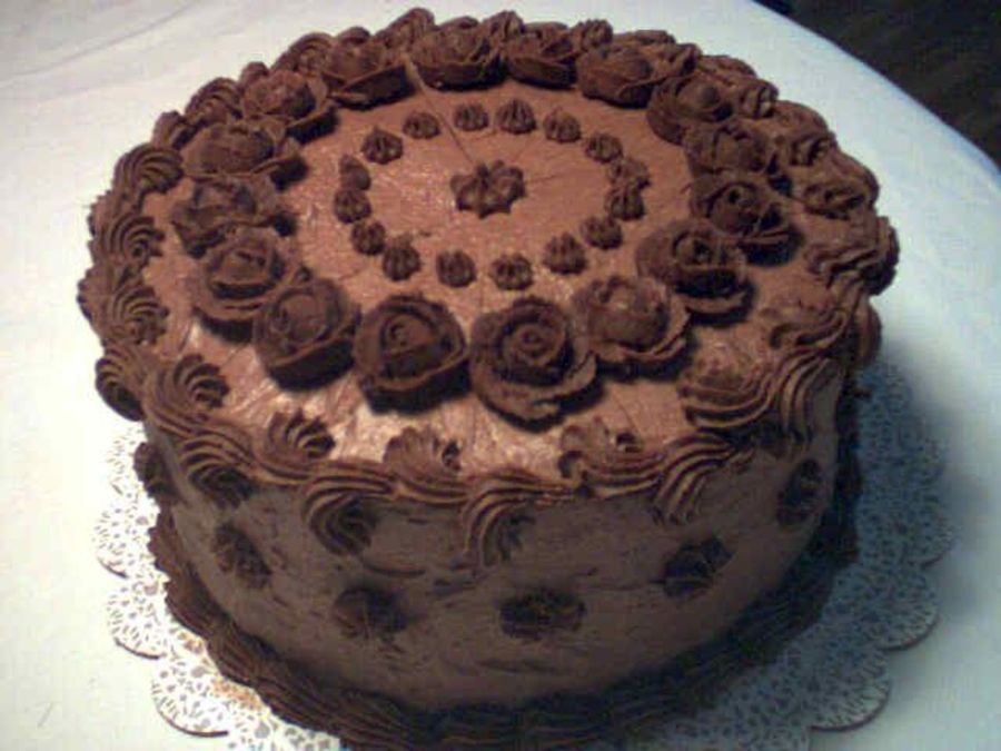 This is a photo of a cake I made last year for the staff of a local restaurant here in town, as a "Thank You" for their presence in the community. It's a 9" round 3-layer rose-flavoured chiffon cake with rose-flavoured custard filling and iced with carob fudge BC. It was a real hit, though it barely cut into enough pieces for everyone to have some.