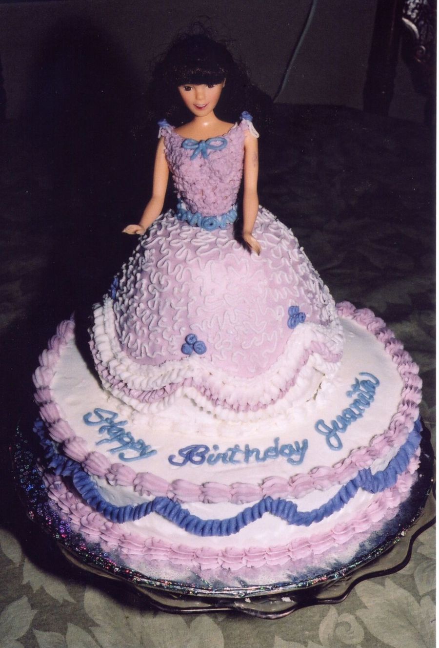 I made this cake in very hot weather and had to change the design that would hold up to the heat. String work is not one of them.