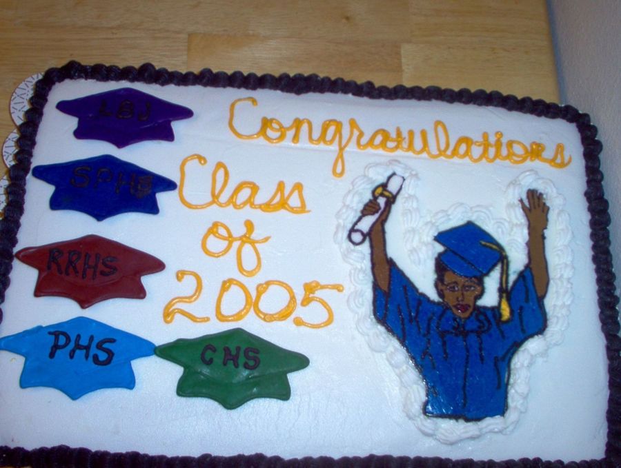 Graduation caps done in 5 different school colors are made from color flow icing. This is my first bct that I learned after coming to this site, I'm very proud of how it came out.