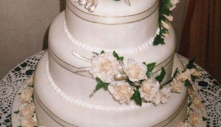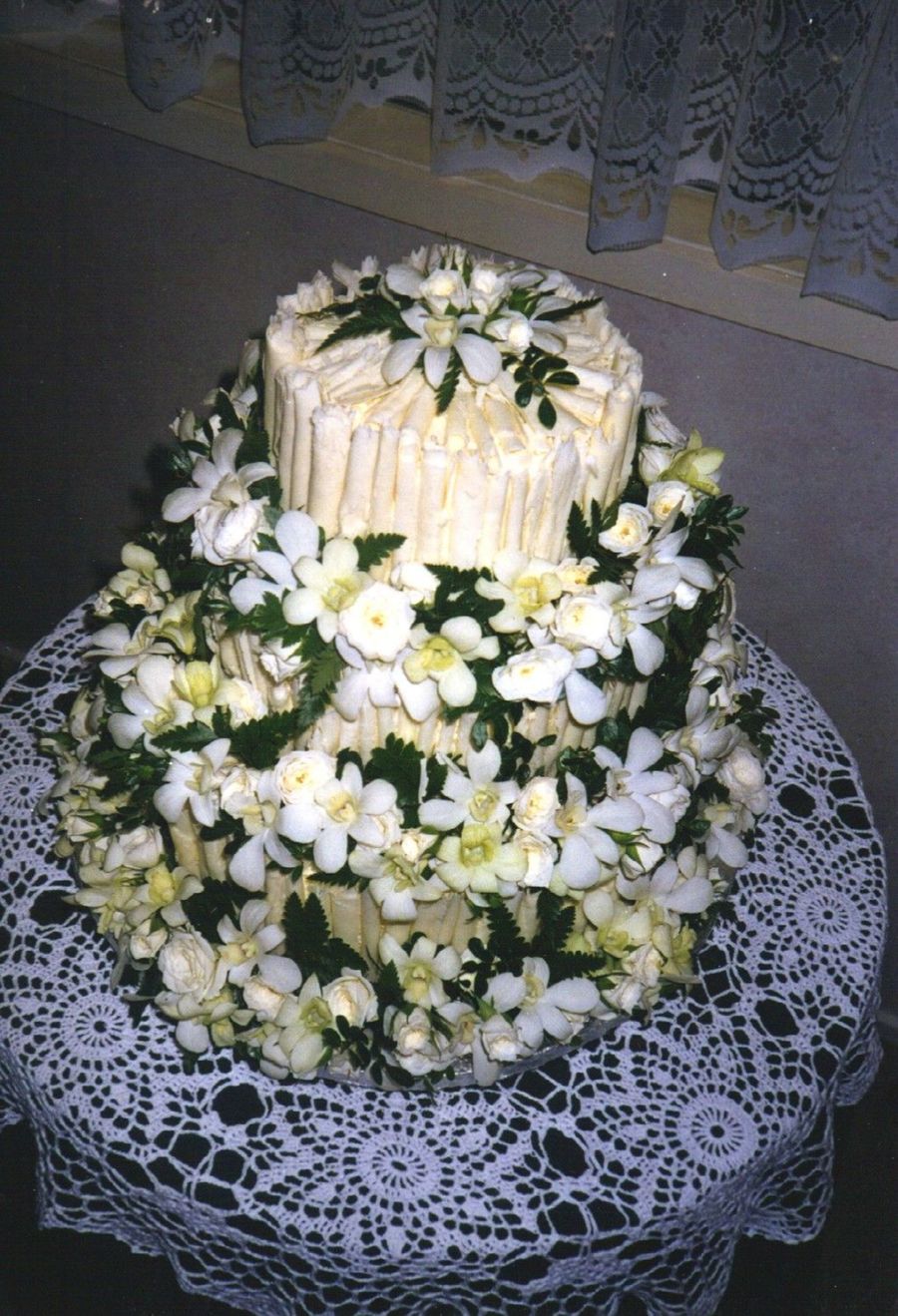kiwitrish on 13 Jun 2006 , 1:45am White chocolate cake with hand rolled squirls and edible Singapore orchads