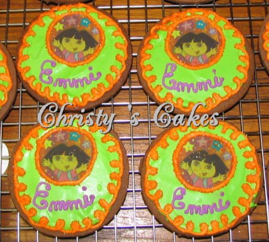 edible image on chocolate cookies decorated with Antonia74's royal icing.