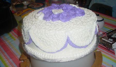 This is the first wedding cake I did, and I will never do a red velvet cake again. I had so much trouble getting the red covered. I did manage to make it look ok. Then they sat overnight and when I checked them the next day the red was bleeding thorugh. Then when I took th roses out of the freezer (had to freeze them they were melting) they all melted anyway, so I had to make new ones out of different icing. In the end I was happy. I didn't see the pillar was messed up till I looked at the pics.
