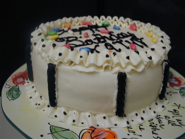 MAK-The cake board is actually a cake plate that my co-worker (who the cake was for) gave to me as a present when I started getting into decorating. It's a favorite of mine too :) kaychristensen - I agree that it would be hard to please most with a black licorice cake...that's why I went with the additions of it rather than the whole thing flavored that way.