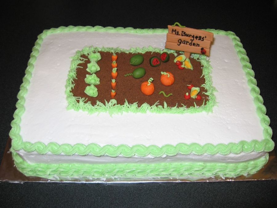 This is a birthday cake that was made for my sons teacher who is an avid gardener. She really loved it. (The veggies are made from fondant/gumpaste and the dirt is chocolate graham crackers)