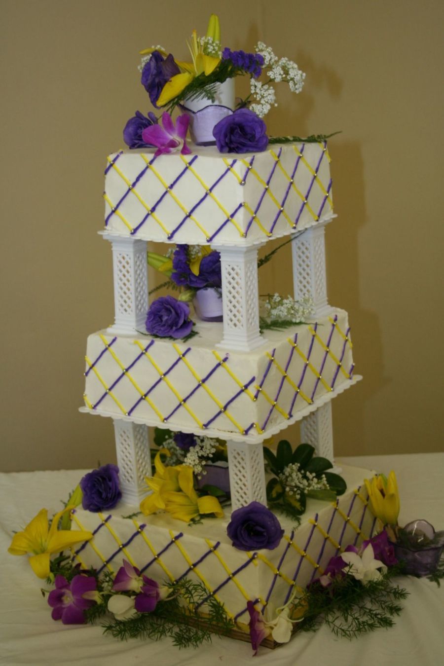 I did this for my bro-inlaws wedding. The wife is a few fries short of a happy meal and they don't have a lot of money so I made this cake for them so that they wouldn't go to walmart and buy a sheet cake that was black and have their picture's add to it I Figured this would have been a lot nicer for a day that is suppose to be a special day.. I found it hard to keep it from leaning though any suggest, for the next time??
