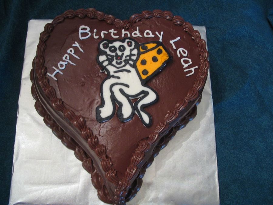 Chocolate cake, chocolate syrup frosting, FBCT mouse. For a party at Chuck E. Cheese - I told the mother I couldn't do a copyrighted image, but I'd do a "cute mouse." Then I had to scramble to find an image of a cute mouse!!