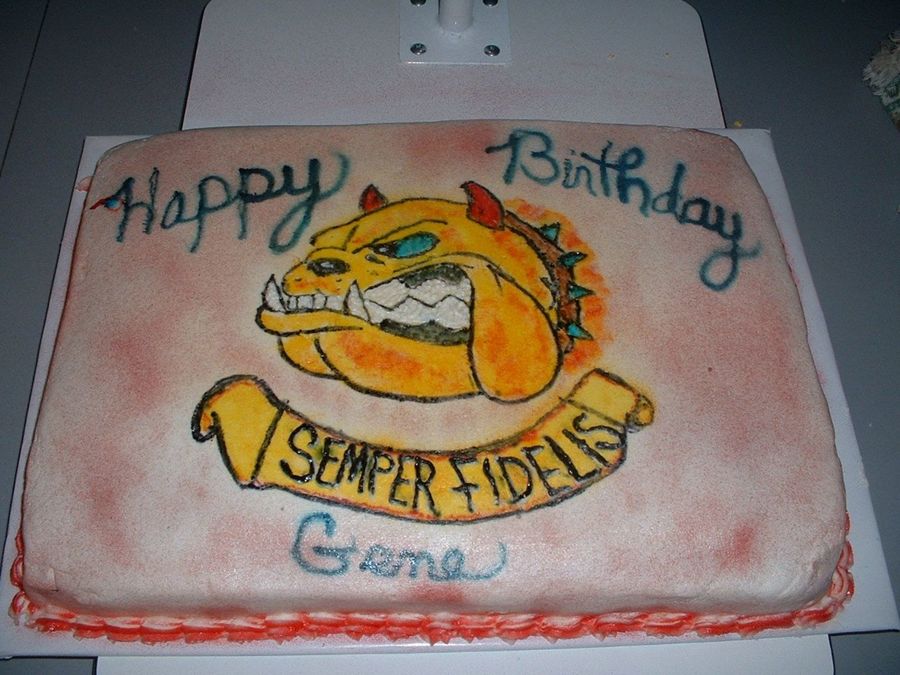 This cake was made for a friend at the Legion who is an ex-marine. It was his 65th birthday. I thought this would be the ideal cake for him. He was really pleased with it. Matter of fact he didn't want to cut it.