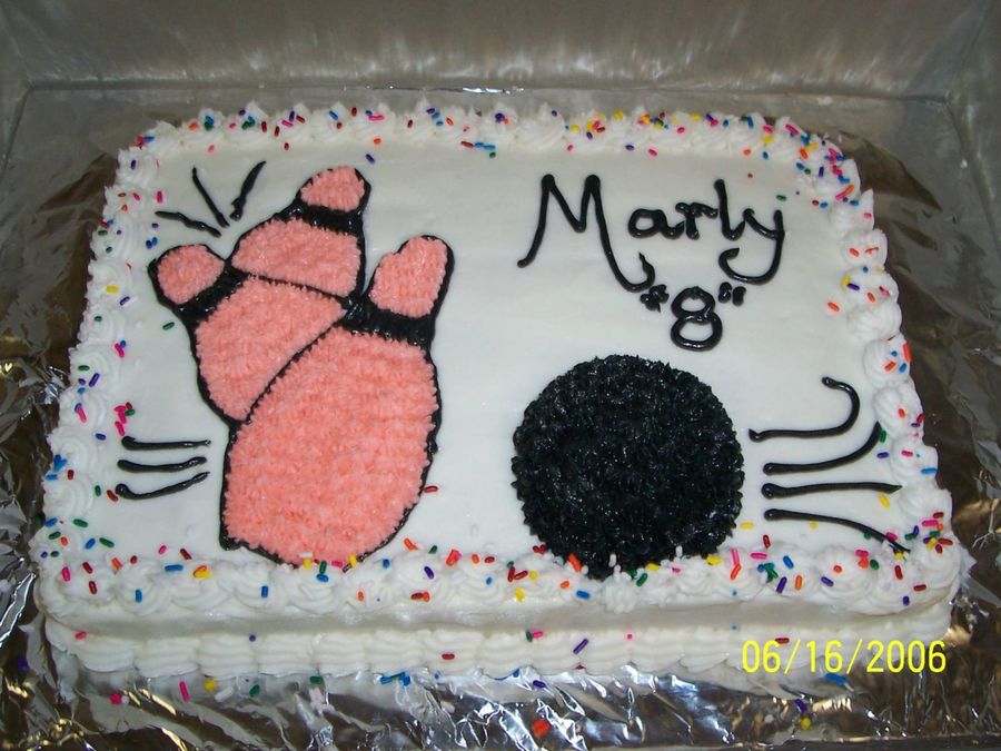 1/4 sheet cake with wilton mini-ball for bowling ball - all decorated in buttercream - thanks to whomever it was who had a similar bowling cake on here that I was inspired by! couldn't have done it without you!