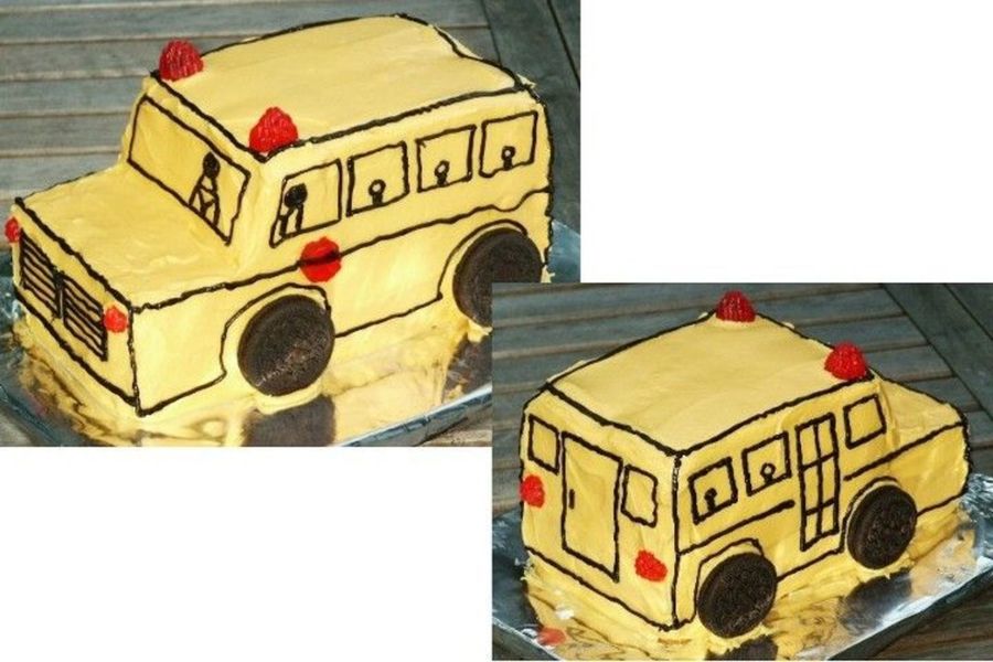 My sons's second birthday cake. He was fascinated with buses after seeing his sisters get on one for school. And again it's not my best work because I don't give myself enough time when it comes to working on my kid's cakes. It was fun though and my son loved it. The red parts are gummy candies and the wheels are oreos.