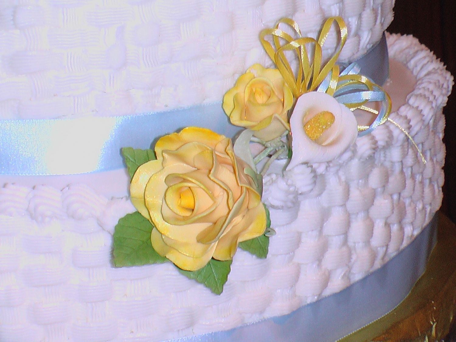 Cake is white with strawberry creama filling. Bride wanted real strawberries too. Gumpaste roses and calla lillies.