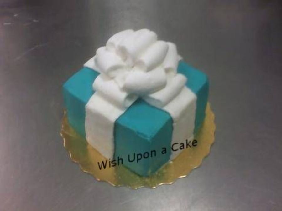 This cake really should be titled the LIDLESS Tiffany Box! Was playing around at work, cut a 1/4 sheet into 2 squares (had to trim a bit off) and made a box. Too bad I didn't realize until I was home with photo that I forgot the lid! Oh well. Everything is BC, the ribbon and bow were made with the large cake icer tip and smoothed with cornstarched fingers. I'm very pleased with the way it came out, although next time, I'll do it at home with MMF.