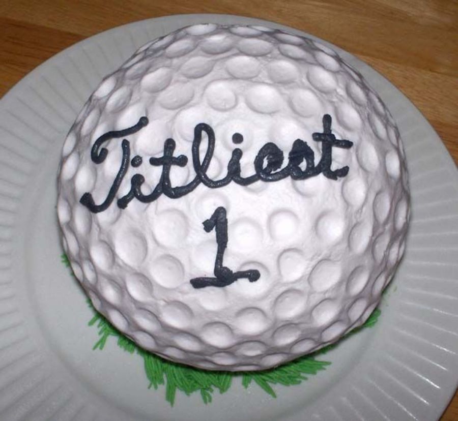 Father's day cake for my father in law who loves golfing. Used the sports ball pan and the end of my candy thermometer to make the indentations. Yep, didn't realize until my husband pointed it out to me that I had spelled it wrong, FIL didn't say anything though!