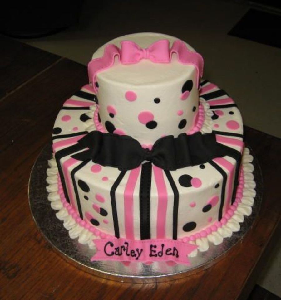 Great cake! I love the stripes and polka dots together on the bottom cake!